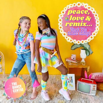 Right on! Calling all groovy girls & guys who love tie-dye, bell bottoms and Polaroid pictures for this 70s-inspired jazz and hip hop camp! Peace, Love and Remix dancers will work hard to earn three Flower Power Patches through groovy dance activities and retro crafts — including fun photo ops with instant cameras and a funky 70s mood board! Then, get ready to perform live at the Retro Remix finale! This dance camp is sure to be far out and groove-tastic!